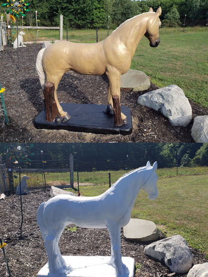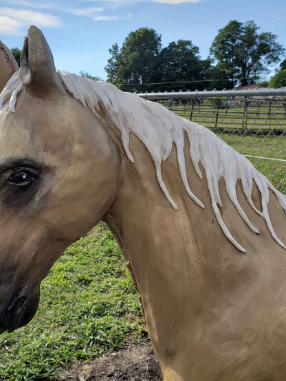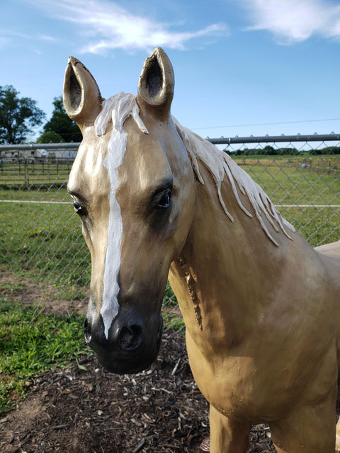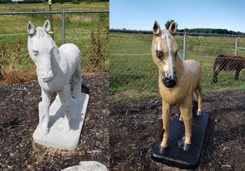 This was a unique and fun project! I was commissioned to paint this concrete horse statue to match a specific palomino horse that the client had owned.