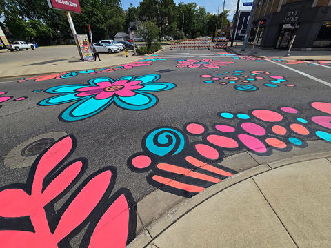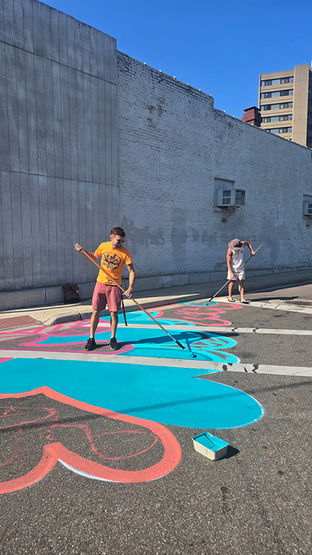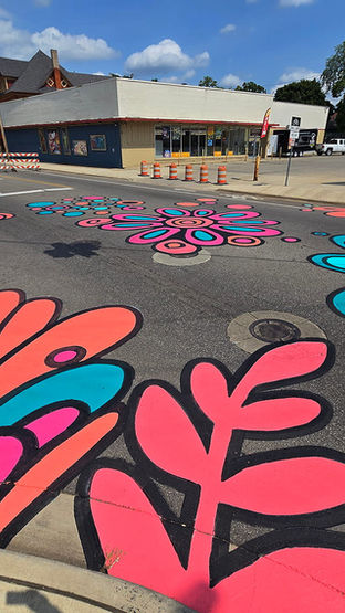 Completed in August of 2025, this mural was the first of it's kind in our area. My mural design was selected for the Edison Neighborhood Association's Washington Square Scramble Mural which was painted on the street's crosswalk in the heart of Edison. For this project I was the mural designer and assisted in the painting. This was a community paint project, where citizens came together and all contributed to putting in the colors. The final outlining was done by project manager Patrick Hershberger. Designs for the mural were submitted to the ENA and voted on by a committee of local business owners and city officials.