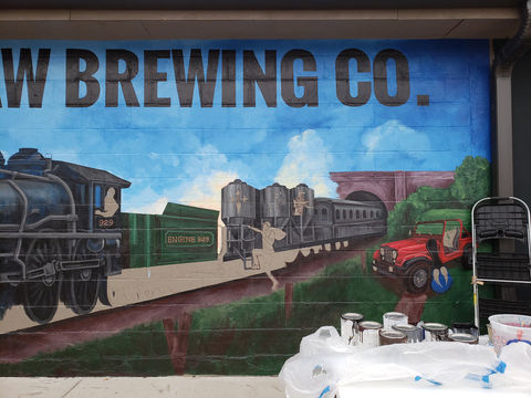 I designed and painted this large outdoor mural for Paw Paw Brewing Company in 2020. It spans the exterior of their building and serves as a history to both their business and the building. The client also wanted the name very large so that it can be seen from the road (since their location is set back off the main street).