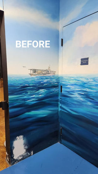 I was hired to undertake mural restoration on the massive murals at The Air Zoo in Kalamazoo, MI. After 20 years of visitors and traffic the mural was in need of some TLC and touch-ups. Originally painted by aviation artist Rick Herter in 2004, this incredible mural measures 32′ high by 900′ long and spans 29,000 square feet and depicts the history of flight. There is also an additional kids playroom area consisting of additional murals including mythology and more.