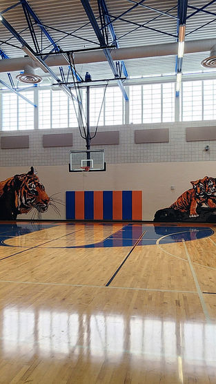 I've painted several murals throughout the years at Gobles Public Schools. When the elementary school renovation was done back in 2004, I painted two large tiger murals in the new gymnasium.